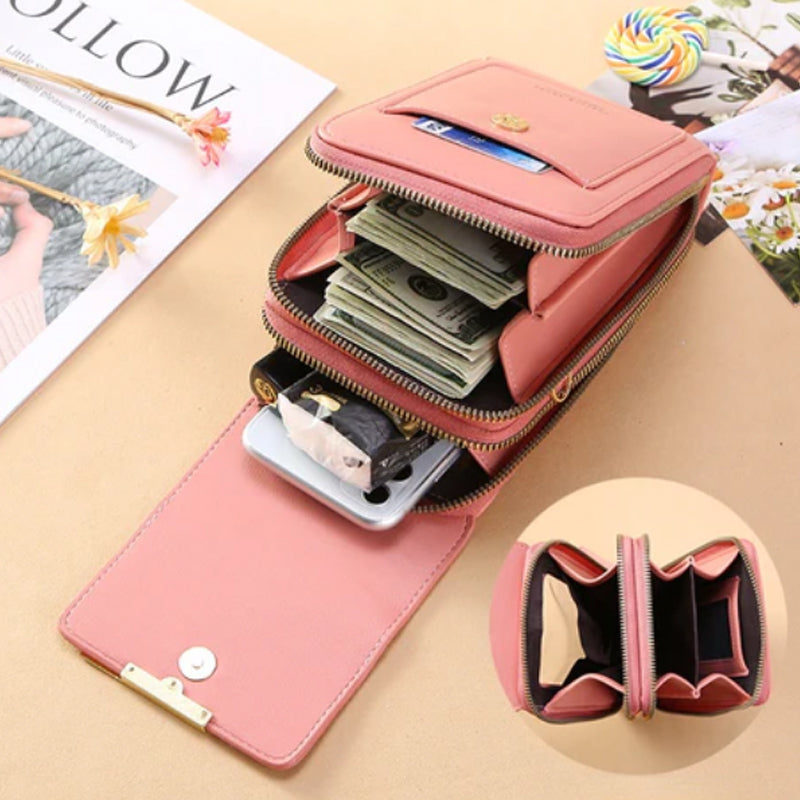 Den har rom for kort, penger, sminke, mobiltelefon og andre nødvendige ting.