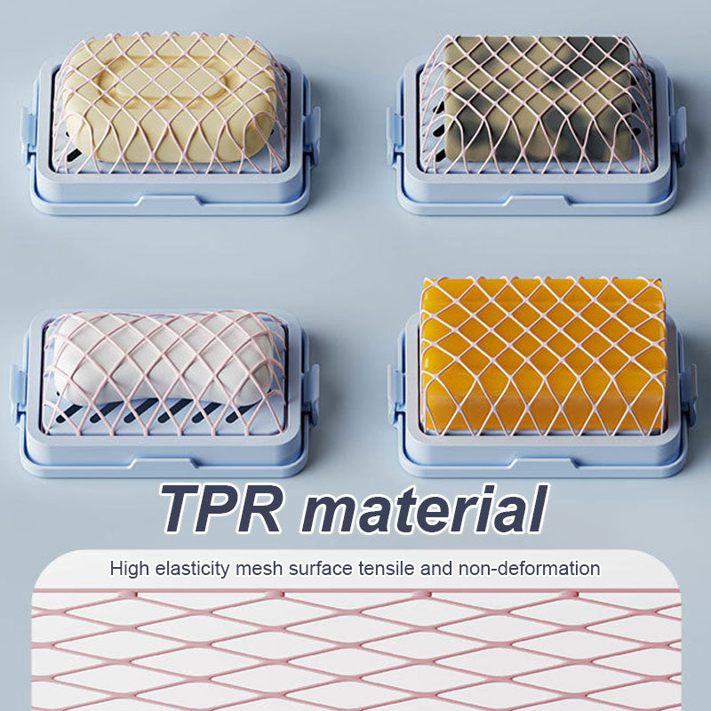 Det høyelastiske nettet passer til alle såpestørrelser og tilpasser seg for å holde såpen stødig. Laget av TPR-materiale, motstår det strekk og deformasjon, noe som sikrer lang levetid.