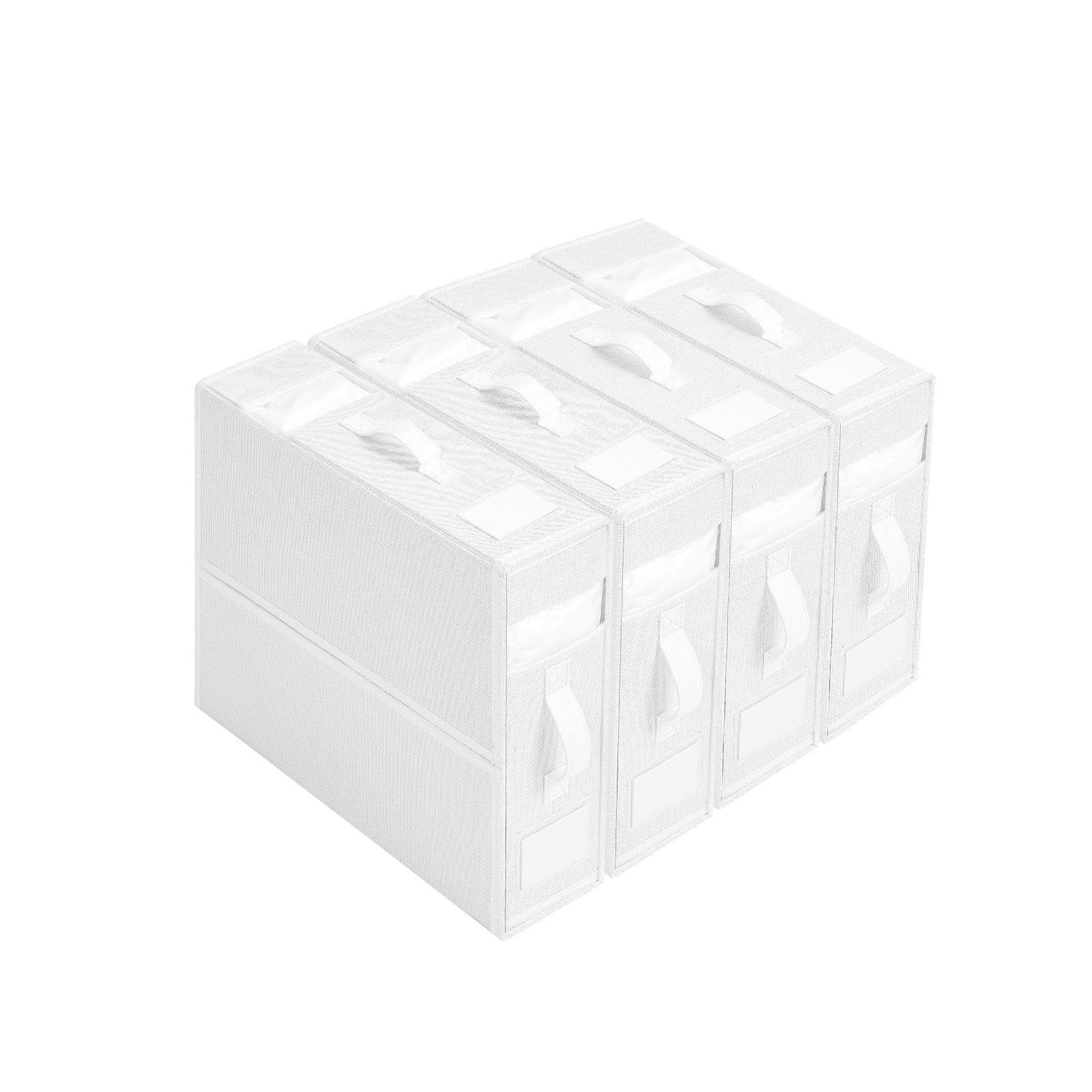 Oppbevaringsboksene er designet med etiketter, visuelle vinduer og håndtak på 2 forskjellige sider, og passer dermed til ulike skaphøyder. Du kan med et blikk se hva du leter etter blant de mange gjenstandene, noe som gjør det enkelt å få tilgang til og ta ut lakenet eller klærne.