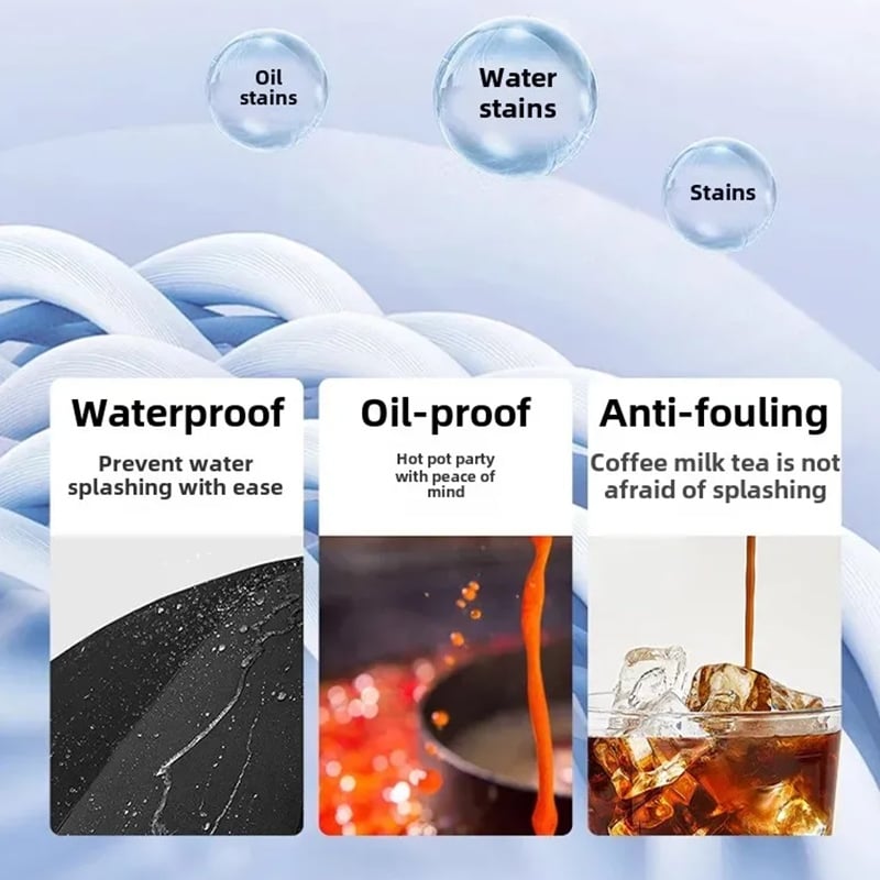 💧 Trippel beskyttelse: Vanntett, oljebestandig og flekkbestandig. Gir utmerket forsvar mot væsker og oljer, og opprettholder plaggets renhet.