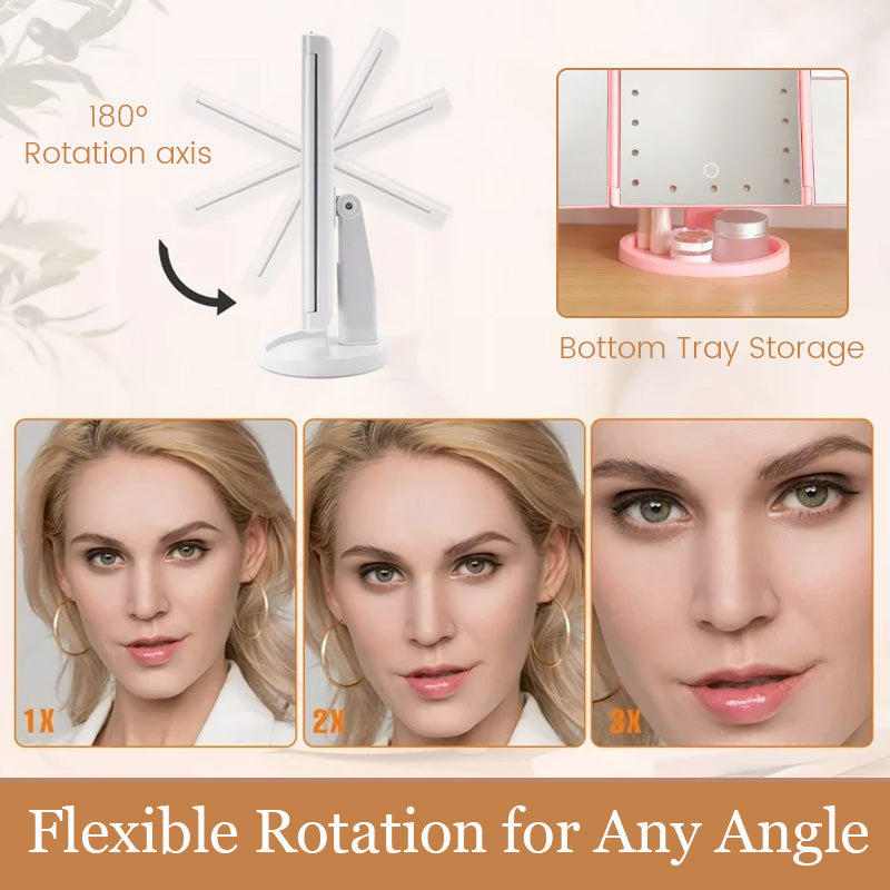 {Gratis Frakt}Tre-sidig sammenleggbart Led-sminkespeil