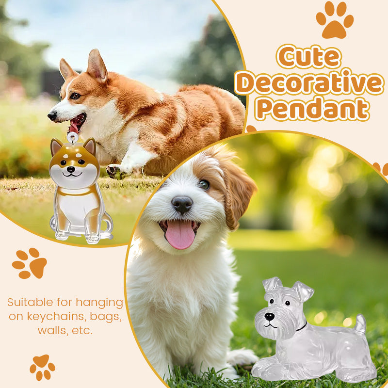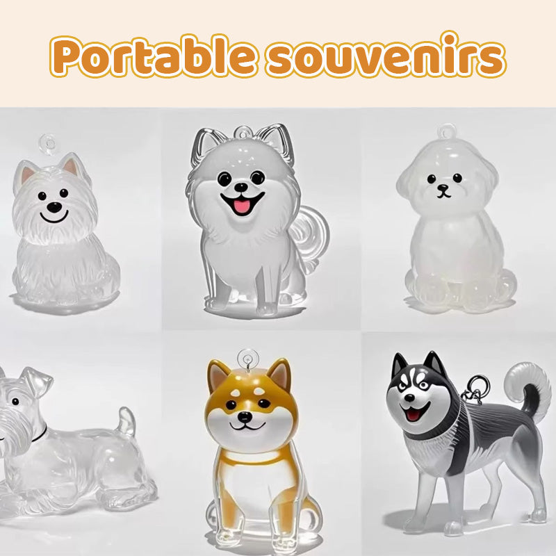 Dette er en minneboks for hår designet for dyreelskere. Det gjennomsiktige skallet er matchet med en valpeformet design, som er mild og søt. Den innebygde plassen kan lagre dyrehår, skjegg og andre minnesmerker. Den har en ring og kan brukes som et anheng, nøkkelring og bærbart tilbehør for å beskytte omsorg og lengsel til enhver tid.