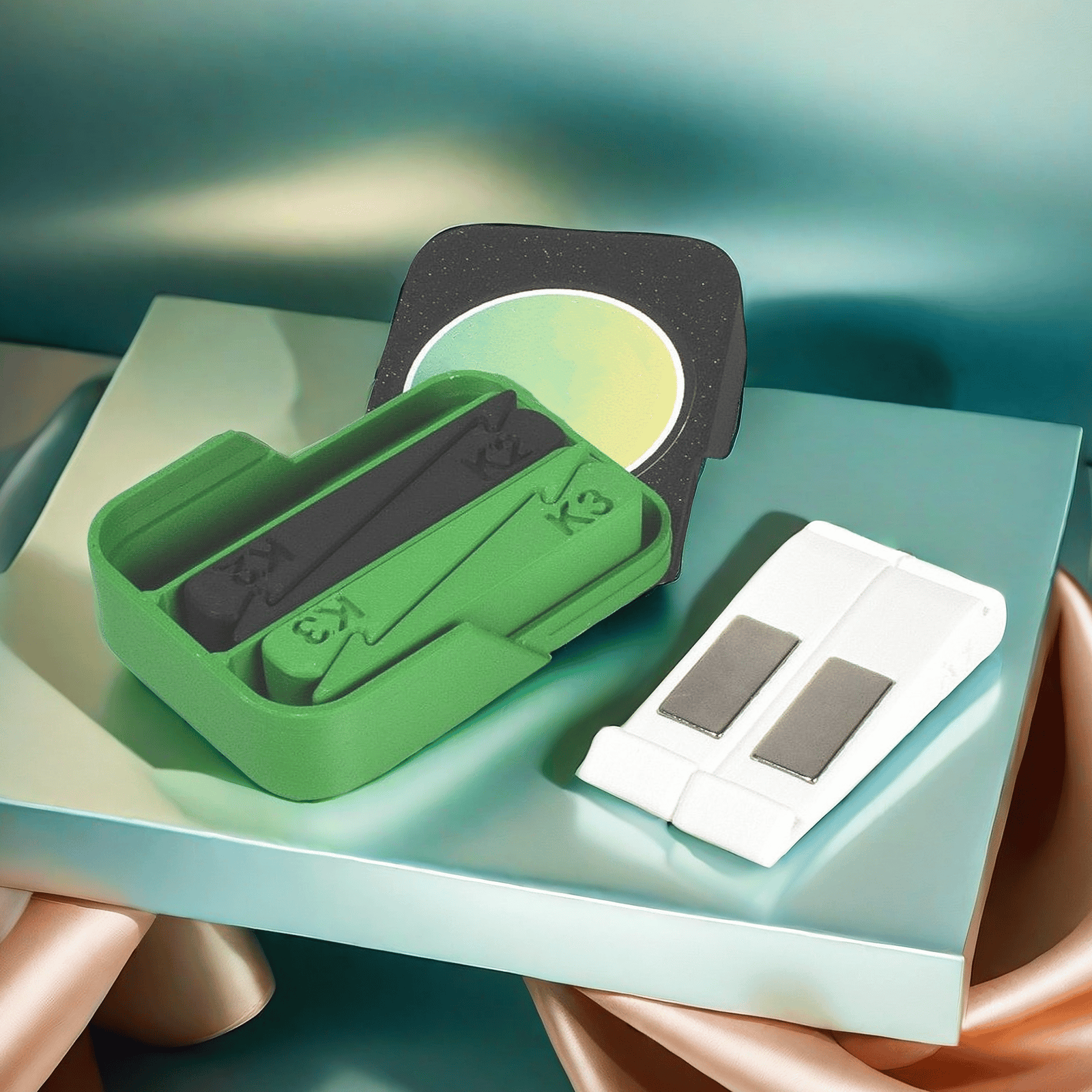 Høykvalitetsmaterialer: Laget av matsikker og slitesterk PLA-plast, som sikrer at den aldri vil ruste, knuse eller skade knivene dine.
