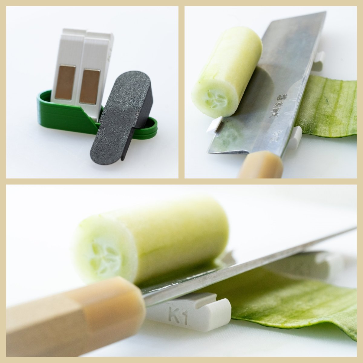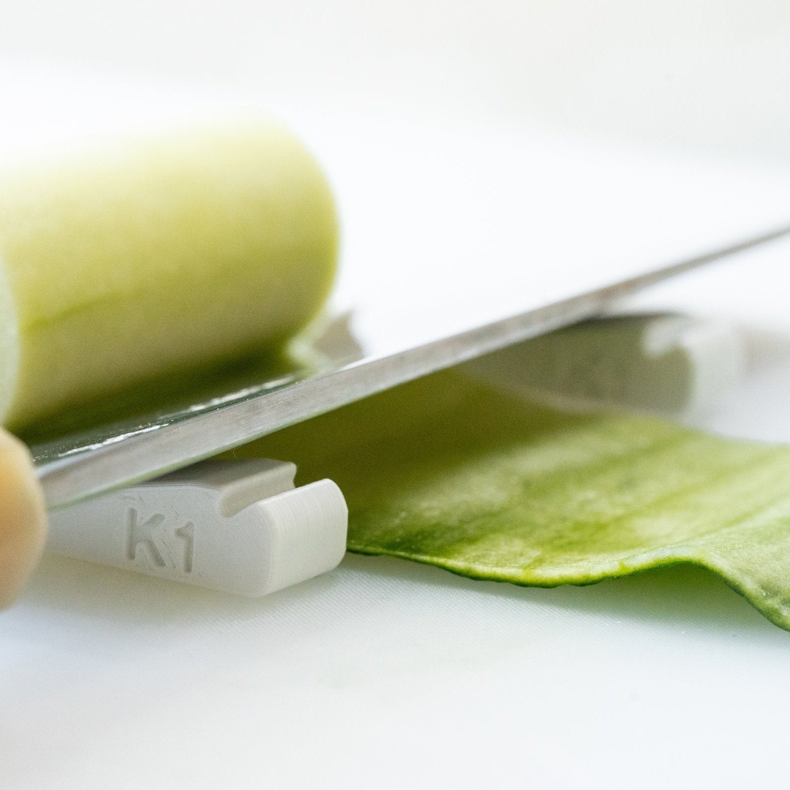 Sterk anvendelighet: Supersterke magneter fester hjelpemidlet sikkert til kniven din, og gir stabilitet mens du skreller og trimmer en rekke grønnsaker.