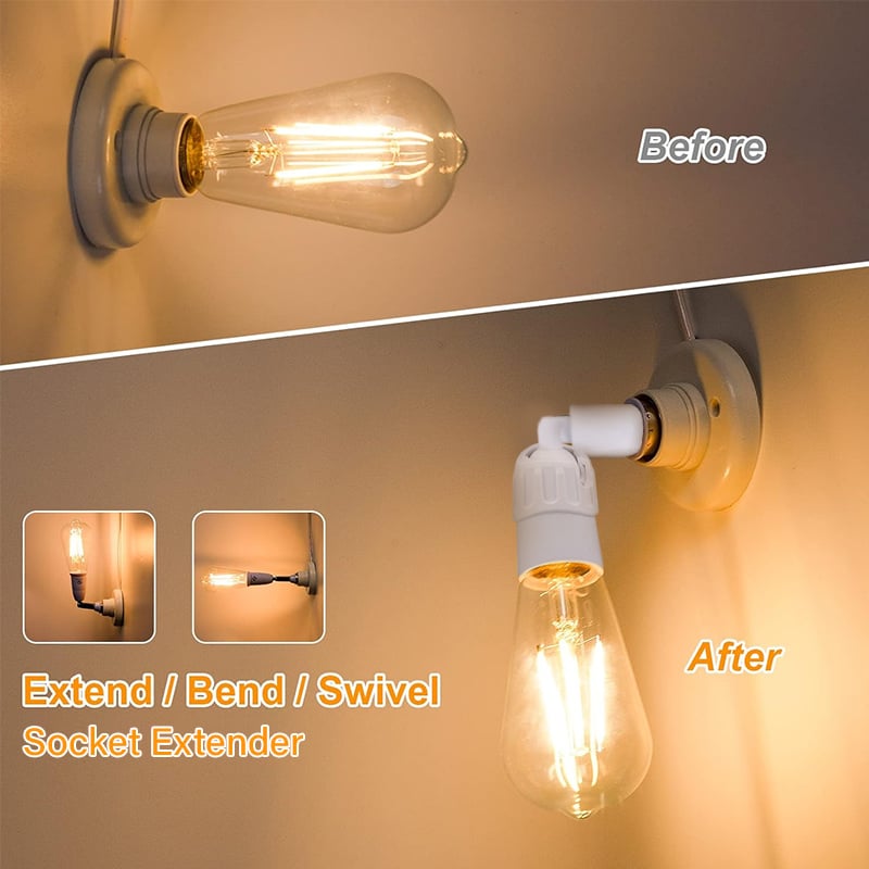 Enkel å installere: Fjern den eksisterende pæren, skru inn forlengeren, juster lyssokkelen til passende retning via 360° aksial rotasjon og 180° radiell bøyning.