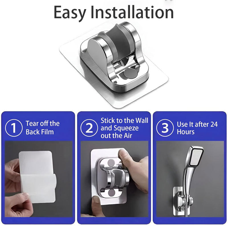 Ingen boring av hull, ingen verktøy trengs! Braketten er enkel å montere med sterk selvklebende tape. Passer til de fleste dusjhoder og spraypistoler, og kan justeres til en vinkel på 120° for maksimal bekvemmelighet.