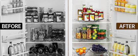 Denne lazy susan-arrangøren for kjøleskap har en perfekt størrelse på L15,67 x B11,73 x H1,26 tommer, passer i de fleste kjøleskap og har plass til opptil 17,6 kg varer, mye mer enn en typisk sirkulær lazy susan-arrangør. Passer også til skap, pantry, kjøkkenbord og benkeplater.