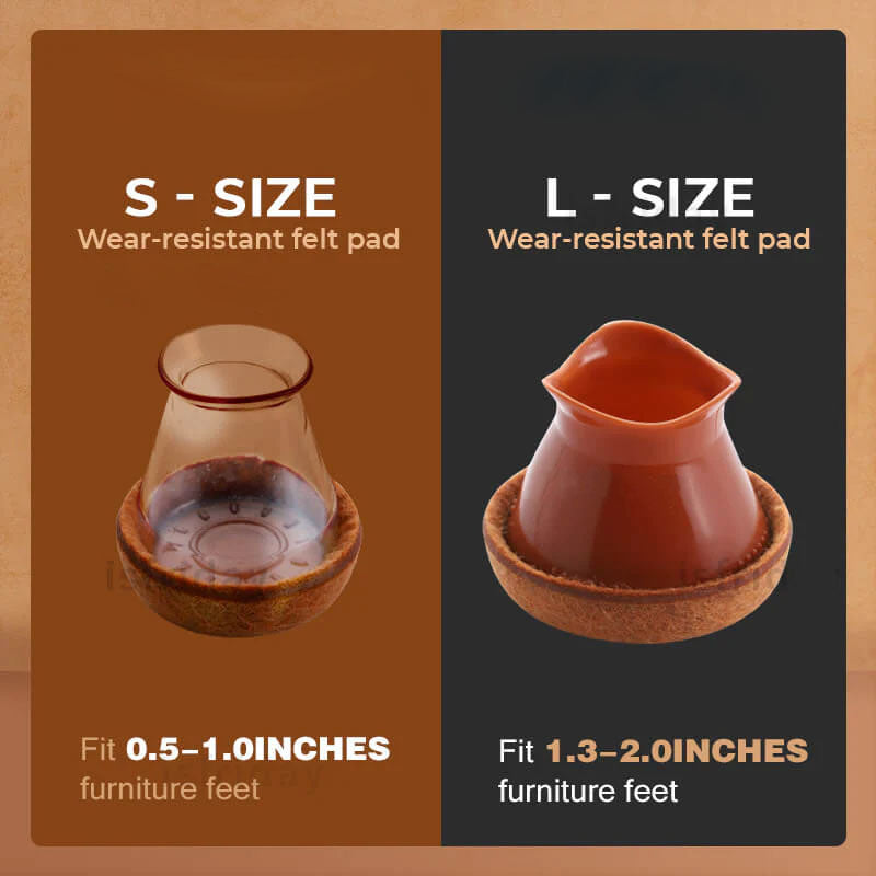Den forbedrede versjonen er tilgjengelig i to størrelser som passer til ulike møbelbenstørrelser, størrelse S som passer til 0,5-1,0 tommer og størrelse L som passer til 1,3-2,0 tommer for ulike møbelbenformer. Velg det riktige beskyttelsestrekket for dine møbler!