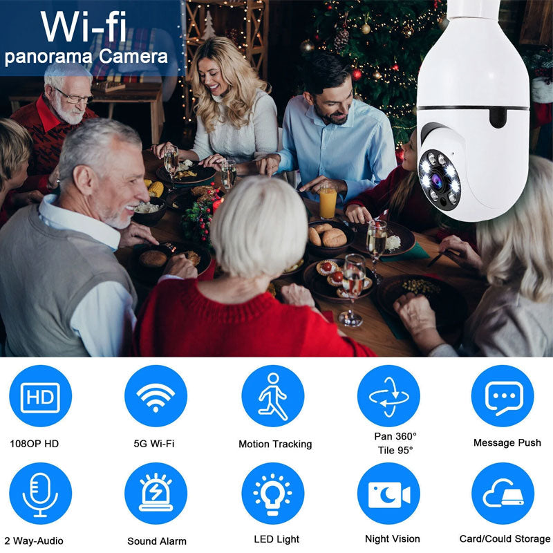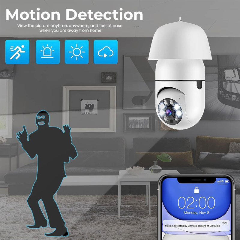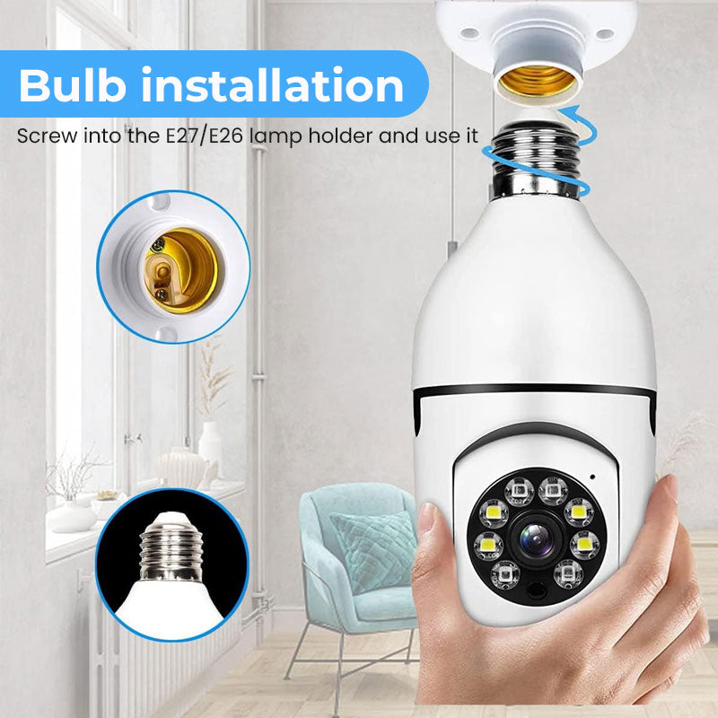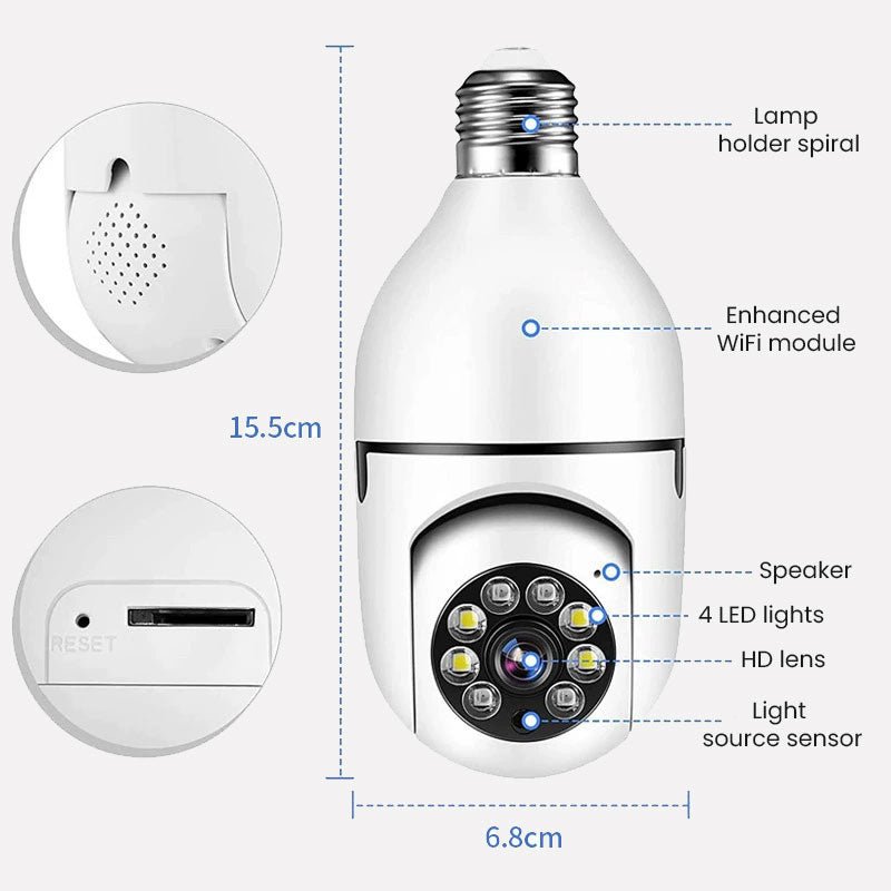 Det smarte lyspærekameraet som integrerer belysning og overvåking, krever ikke kjedelig installasjon. Det kan enkelt skrus inn i lampeholderen for bruk. Støtter HD-nattsyn, fjernkontroll og toveis taleintercom, noe som gir sikkerhetsbeskyttelse for hjemmet og butikken din i all slags vær!