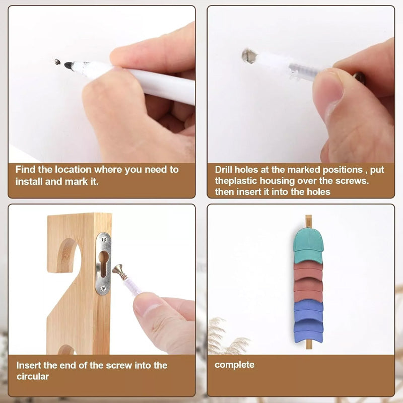 🎉Materialoppgradering: Forskjellen mellom oss og andre er at vi endret krumningen av hattehyllen til en halvsirkel, slik at hattene kan holde seg fast til veggen mer fast enn andre tre baseball cap stativer.